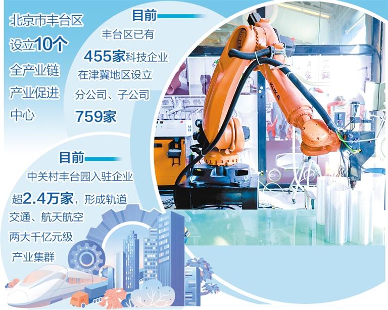 丰台区科信局副局长付智勇说:“丰台区聚焦空天信息、人工智能等重点领域,积极构建‘创新链—产业链’深度耦合生态,引导和支持企业跨区域布局,目前丰台区已有455家科技企业在津冀地区设立分公司、子公司759家。”