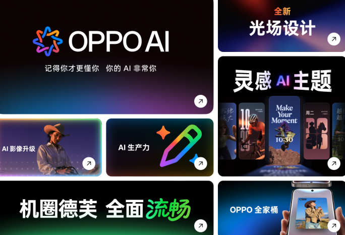 AI 一键闪记支持取餐码、账单、视频、语音等多形式记录,内容秒上云且智能分类;小布助手升级个性化引擎,可实现个性问答、AI 简报、实景对话等千人千面服务;AI 影像新增人像补光,相册和视频编辑能力全面升级;AI 生产力工具覆盖录音转写、智能代写、AI 便签,可一键生成 PPT、表格等,大幅提升办公学习效率。