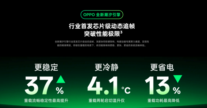 ColorOS 16搭载的极光引擎带来了安卓首个“无缝架构”,通过跨模块一体化无缝绘制和分布式响应调度,实现Top应用点击响应流畅度提升40%,三方应用滑动帧率稳定性提升52%。潮汐引擎的芯片级动态追帧技术可提前预判卡顿并提升算力,重载场景流畅稳定性最高提升37%。繁星编译器实现安卓首个跨级融合编译技术,大幅提升编译语言执行效率,让 JAVA 核心接口性能提升 26%、整机负载降低 14%。