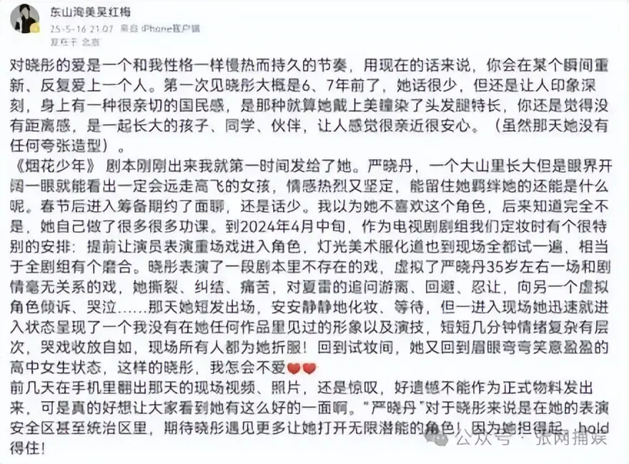 更打脸的是,有网友扒出,这位制片人之前可不是这么说的!开播前,她曾多次公开夸赞关晓彤,说剧本完成后第一时间就发给她,盛赞其试镜时的即兴表演惊艳全场,直言关晓彤是“天选严晓丹”。