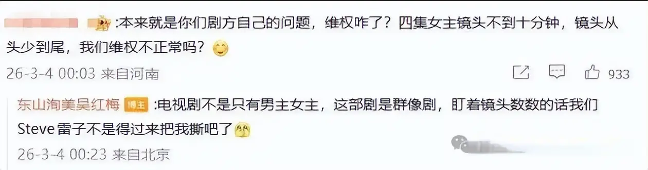 粉丝维权,不是为了“闹大”,而是想让剧方正视问题:群像剧不是女主边缘化的借口,制作失误不该让演员背锅,宣传承诺不能形同虚设。爱剧护剧,从来都不是用声浪掩盖问题,而是在真诚的讨论中,让缺陷被正视,让剧作的意义真正落地,掩耳盗铃,从来都走不长久!