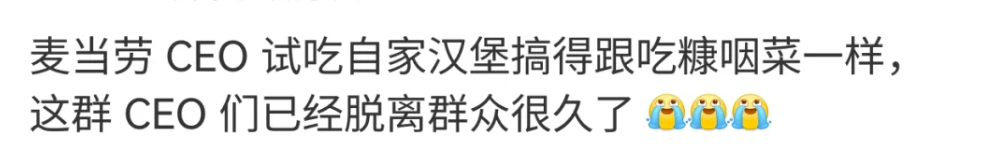 这个世界有两种汉堡,一种是麦当劳汉堡,一种是CEO手里的麦当劳汉堡。